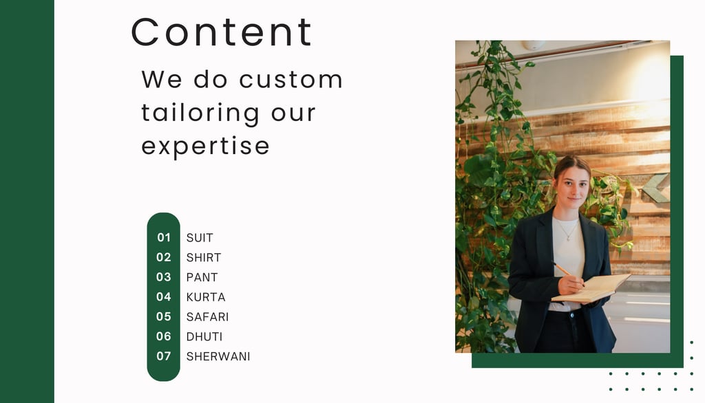 Our services are perfect for weddings, business attire, or any casual elegance, tailored to suit your style.